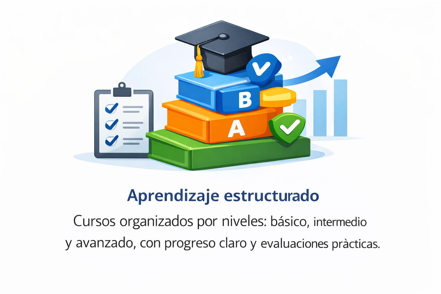 Práctico y progresivo: cada módulo introduce conceptos clave acompañados de ejemplos claros y ejercicios guiados que te permitirán aplicar lo aprendido de inmediato.